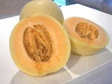 メロンには皮に網目のあるネット系と、なめらかなノーネット系があり、ハニーデューは後者。クリーム~白緑色をした皮に、果肉は薄緑色(オレンジ色の品種もある)。ジューシーで