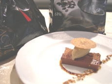 早速、4月の『旬のおすすめコース』のデザートに、「チョコレートとヘーゼルナッツのデリス
